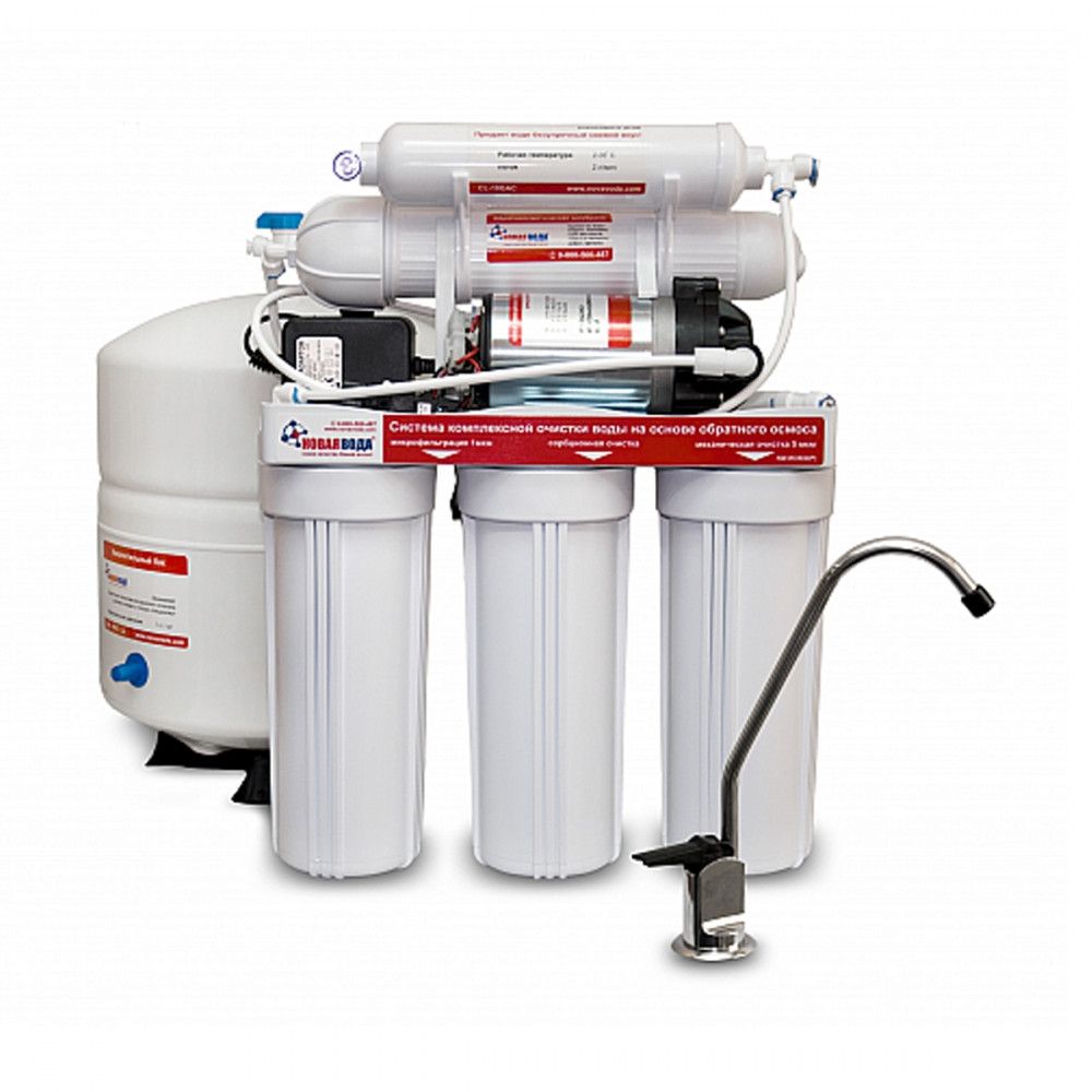 Система зворотного осмоса Нова Вода NW-RO 500P - фільтр обладнаний всіма необхідними елементами та комплектуючими для тривалої та безперебійної роботи, для очищення води з найвищою якістю.